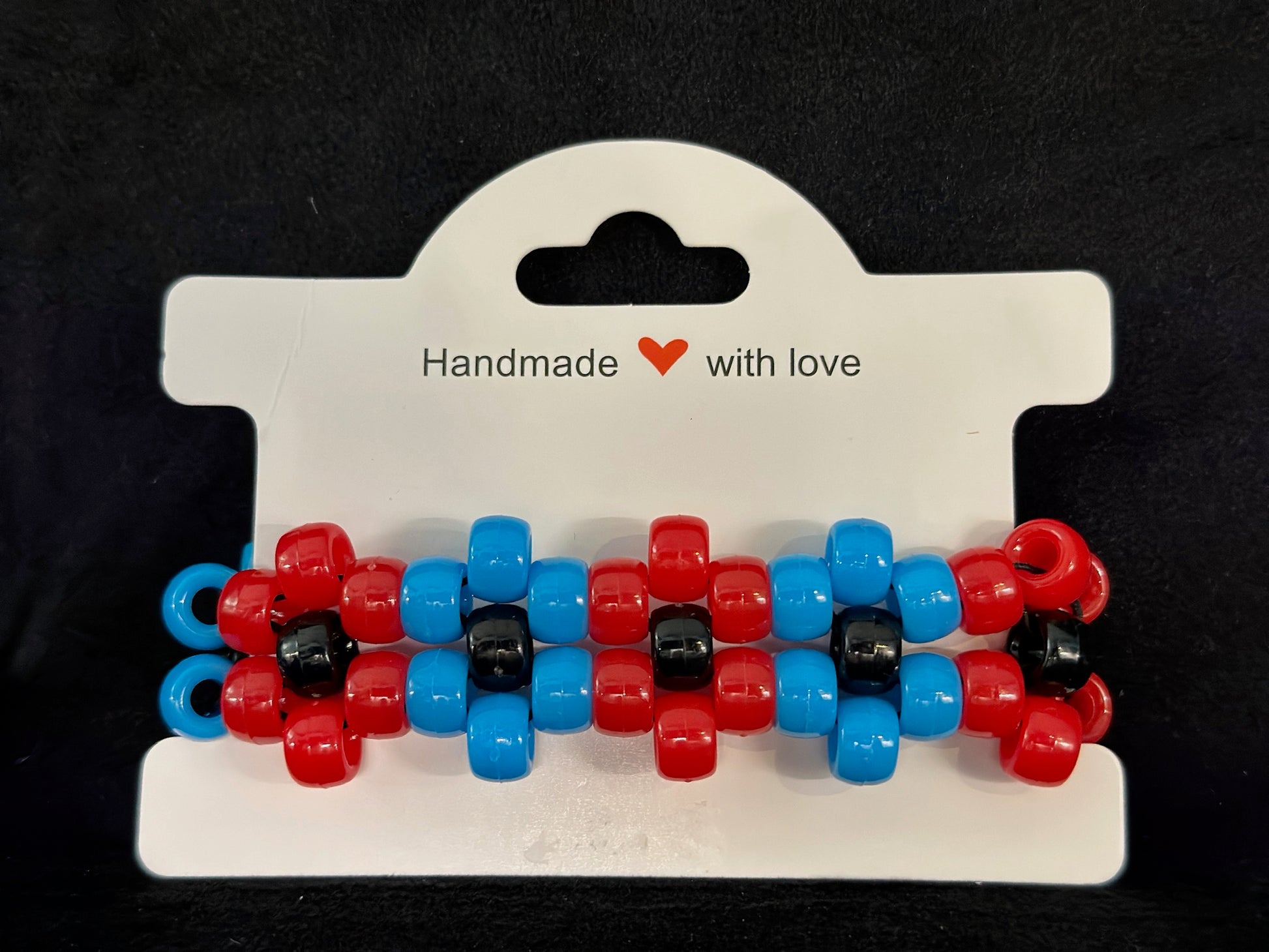 Cool, refreshing, and full of playful charm, the Berry Popsicle Flower Cuff is a vibrant tribute to the delicious summer treat. Featuring a mix of rich blue, bright red, and bold black Kandi beads, this cuff mimics the sweet and tangy contrast of berry popsicles. The design incorporates a beautiful flower pattern that adds a touch of elegance and fun to its bold, colorful style.